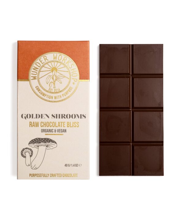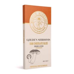 Enjoying a chocolate bar does not always have to be detrimental to your health. This unique chocolate bar is made with certified organic cacao, turmeric and adaptogens. Raw Chocolate Bliss Bar – Golden Shrooms brings together nutritious spices and mushrooms